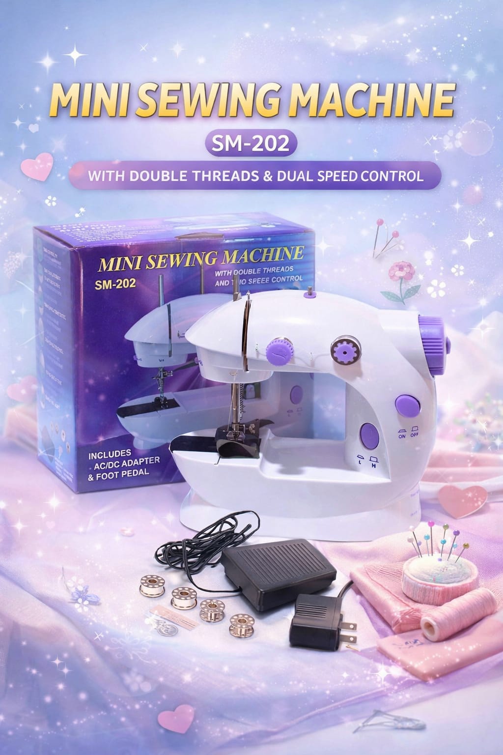 8 in 1 Mini Sewing Machine – Dual Speed Portable Mini Electric Pedal Double Threads Rewind Swing Machine