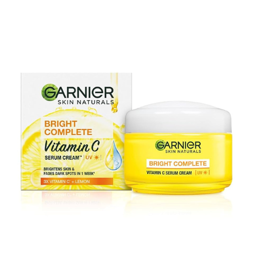 Garnier Bright Complete Vitamin C Serum Cream হলো একটি স্কিনকেয়ার পণ্য যা ভারত নির্মিত। এটি সিরাম ও ক্রিমের সুবিধা একত্রিত করে ত্বককে গভীরভাবে হাইড্রেট ও উজ্জ্বল করে তোলে। এর প্রধান উপাদান ভিটামিন সি, যা ত্বককে ফ্রি র্যাডিক্যালের ক্ষতি থেকে রক্ষা করে, ত্বকের রঙ উজ্জ্বল করে এবং কালো দাগ ও পিগমেন্টেশন কমাতে সাহায্য করে। এছাড়াও এতে রয়েছে গ্লিসারিন, যা ত্বককে ময়েশ্চারাইজ করে, এবং নাইয়াসিনামাইড, যা ত্বকের টেক্সচার উন্নত করে ও সূক্ষ্ম রেখা কমায়।