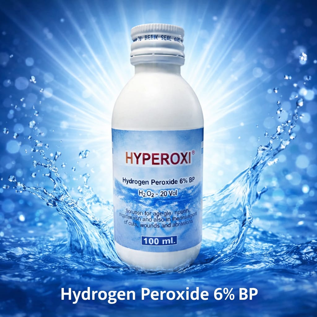 Hyperoxi Hydrogen Peroxide 6% BP (20 Vol) is a high-quality antiseptic solution designed for cleaning minor cuts, wounds, and abrasions. It helps remove debris and reduce the risk of infection when used properly.